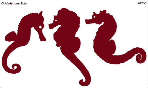Ensemble de 3 hippocampes (modeles 3 à 5). Egalement vendus à l'unité. Les tailles indiquées sont celles de l'ensemble. Si vous souhaitez modifier le sens des dessins merci de le préciser dans les commentaires de votre commande.