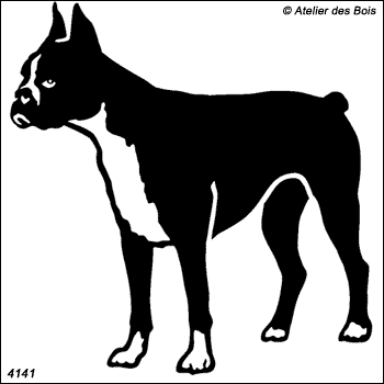 Boxer debout aux oreilles taillées (Traits larges). Existe également en traits fins pour des tailles moyennes et grandes, en oreilles non taillées, ou en silhouette pour de très petites tailles.